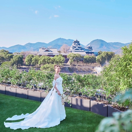 【好アクセス!熊本の中心地で叶う上質なおもてなし】木目×緑×自然光あふれるチャペルへリニューアル★リニューアル特別特典《挙式料最大20万円プレゼント》もあり!開放的なガーデンでは多彩な演出も可能☆『豪華絢爛なシャンデリアが煌めく洗練空間』や『熊本城の雄姿を望む貸切空間』など、バリエーション豊富なパーティ会場をご提案いたします。 365日、様々なゲストをおもてなしするきめ細やかなサービス&絶品料理をはじめ、宿泊施設や着付け室、ドレスショップなど設備も充実。ホテルならではのウエディングで、時を経ても色褪せない最高の一日を実現いたします