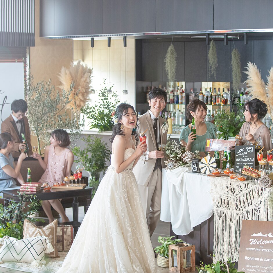 コロナ禍でいかに少人数のゲストに楽しんでもらえるかを考え打ち合わせをしてきました。ほとんどのゲストに前に出てきてもらえるような参加型のイベントをたくさん用意し、ゲストからも今までにこんな結婚式なかったと評判も良かったです!