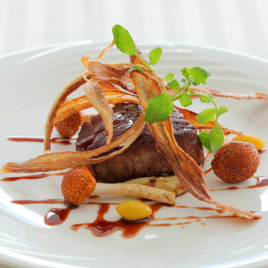 四季折々の旬を感じるオリジナルコースで大切なゲストをもてなそう。味だけでなくシャキシャキとした食感や音など、五感を魅了する絶品の創作フレンチはゲストに評判。アレンジなど気軽に相談できるのも嬉しい。