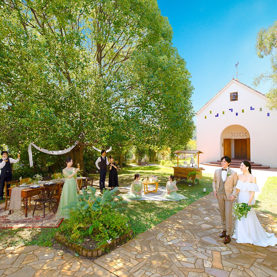 南仏のような緑溢れるガーデンに佇む独立型チャペル