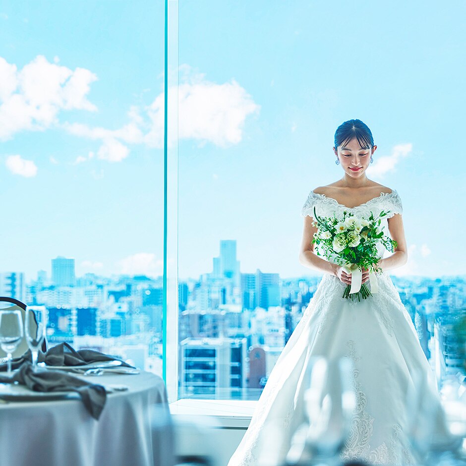 高層階からの眺望が楽しめるワンフロアを貸し切って行う、上質なプライベートウエディング。家族との絆を深めるこだわりが詰まったセレモニーは、新たな人生の素敵なスタートに。