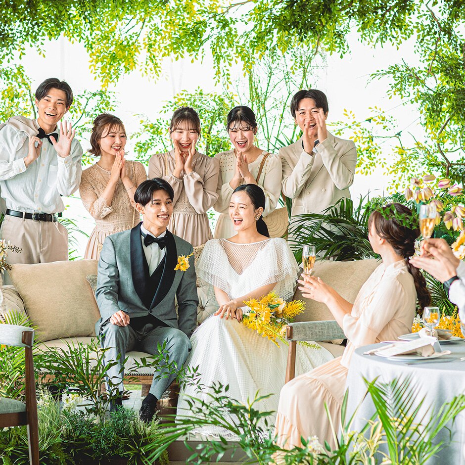 おふたりのすぐそばに、ゲストの笑顔が集まるソファースタイル。 -