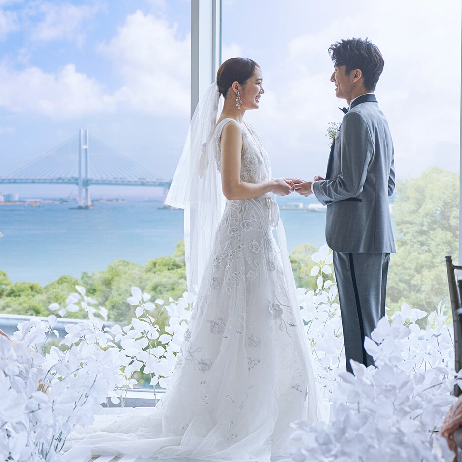 25年8月全館一新。テラス付き人気会場もリニューアル。横浜駅徒歩3分、みなとみらいを見渡す開放的なリゾート空間で、コスパ抜群、自由度が高いからこそ予算も賢く自分たちらしく『海辺のウエディング』を叶えて。好みで選べる挙式スタイルにも注目!