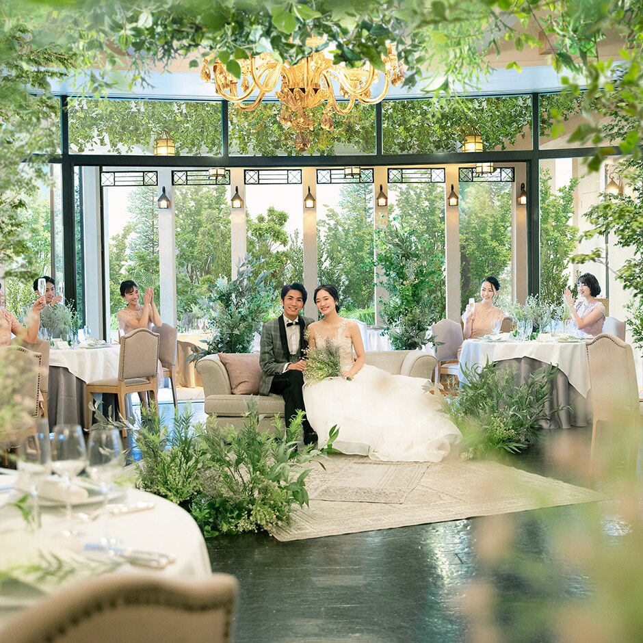 ホテルでありながらも専用エントランスやウエルカムラウンジ、全天候型テラス、プライベートガーデンなど、すべてを貸切にできる邸宅風の会場なら、ゲストとリラックスして優雅な時間を過ごせる。