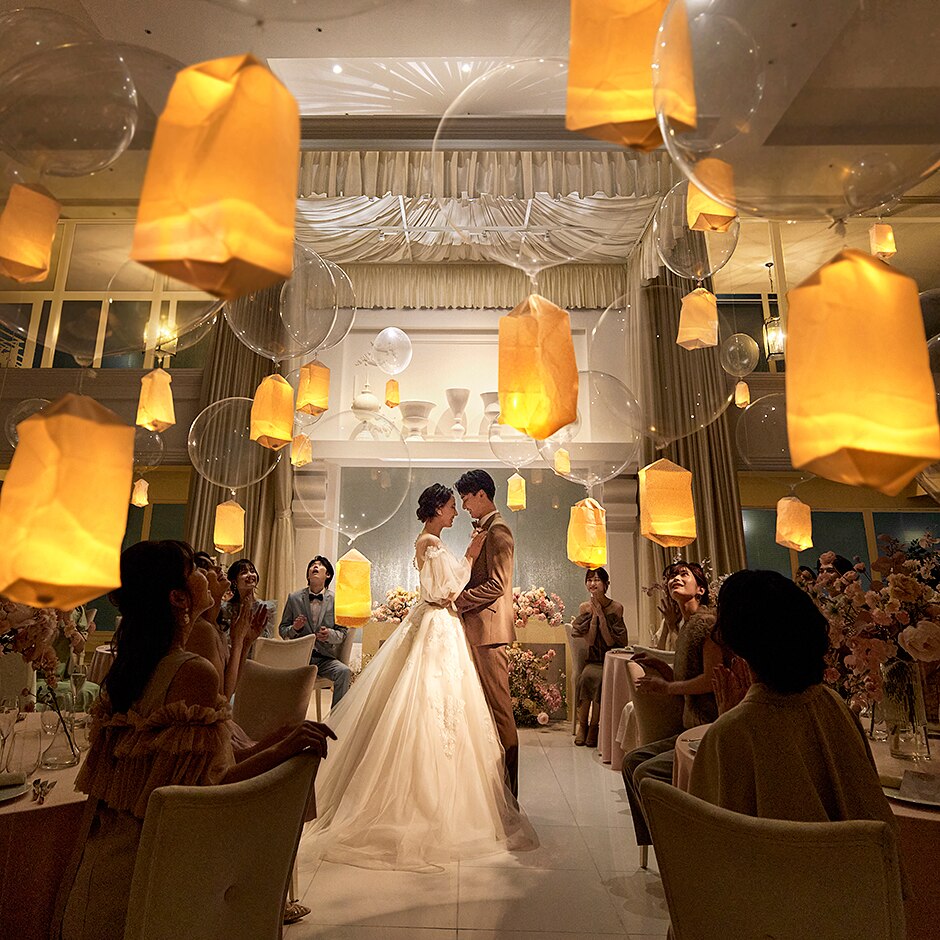 映画の名シーンを連想させるバルーンランタンで、ゲストにドラマチックなひとときをプレゼントするのもGood