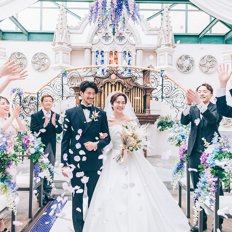 セレモニー後はゲストから憧れのフラワーシャワーで祝福を浴びて