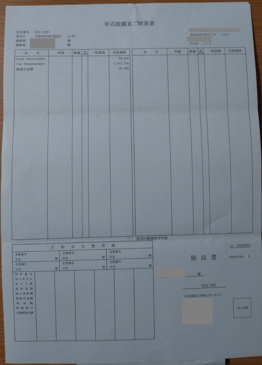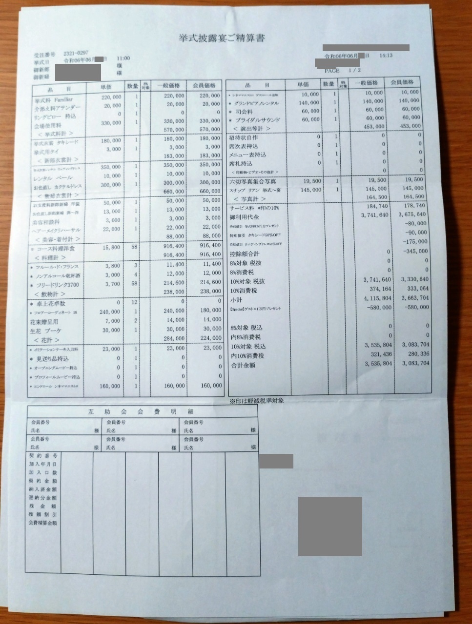 ※料金実例では申込金などを含む会場に支払った"総額"を表示しています。また、料金明細画像の項目名をもとに独自の基準で分類しています。