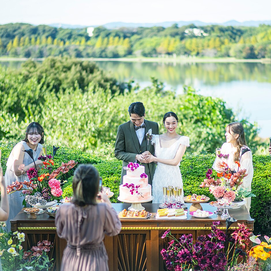 色とりどりのスイーツに囲まれて、ゲストと一緒に過ごす笑顔あふれるガーデンタイム