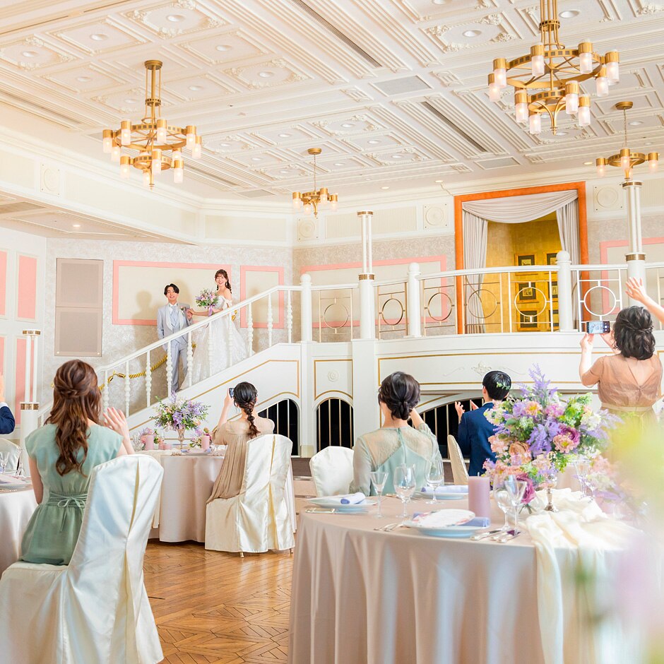 バルコニーからの入場でゲストの祝福に包まれながら入場を -