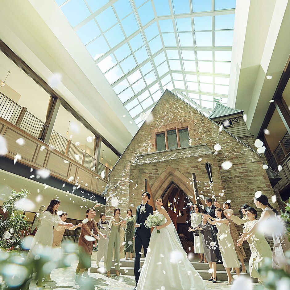 自然光が差し込む開放感ある全天候型チャペルで心温まるアフターセレモニー