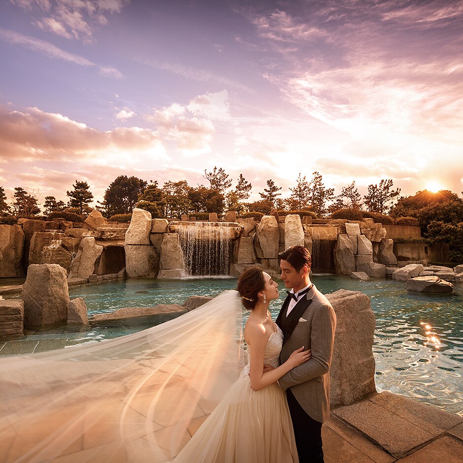 壮大なチャペルやテーマ性に溢れたバンケットの他にも、広大な敷地内には美しいリゾート空間が広がる。季節ごとに花々が色づくローズガーデンや清々しいプールサイドなど、絵になるスポットがたくさん点在する。
