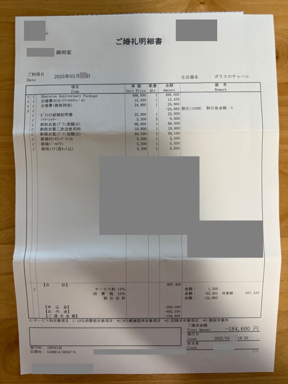 ※投稿された金額情報は、日取り、申込みのタイミングや会場の空き状況等によって異なるため、最終費用明細の項目や金額をもとにした、式場との価格交渉や追加サービス等の要望はご遠慮ください。