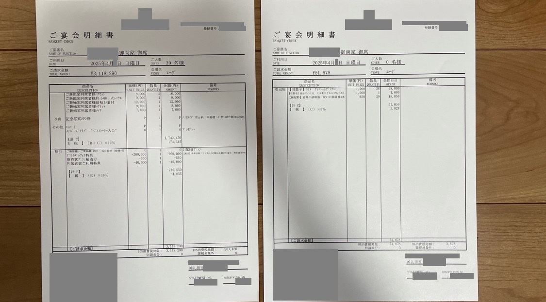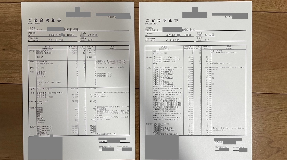 ※料金実例では申込金などを含む会場に支払った"総額"を表示しています。また、料金明細画像の項目名をもとに独自の基準で分類しています。