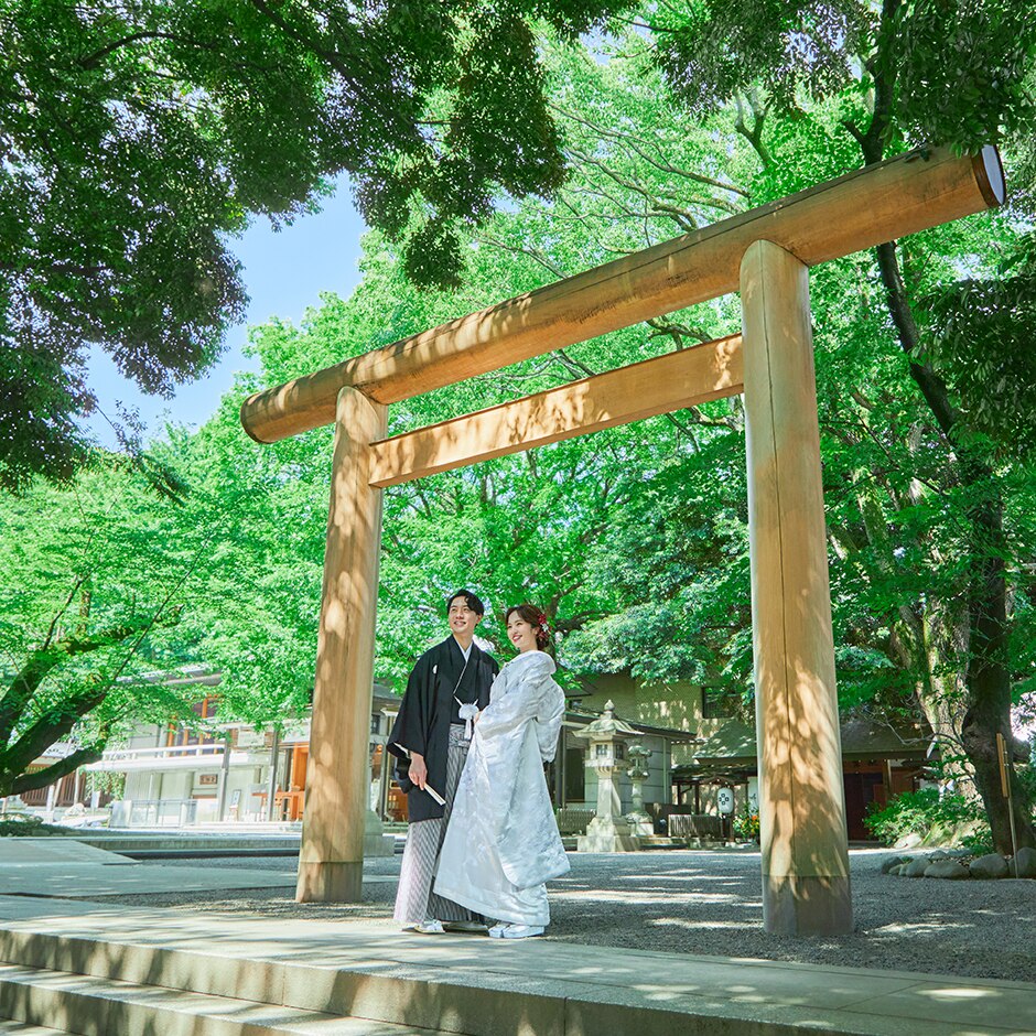 乃木坂駅徒歩10秒。豊かな自然の中、半屋外の社殿で夫婦の誓いをかわす『よりそひ婚』