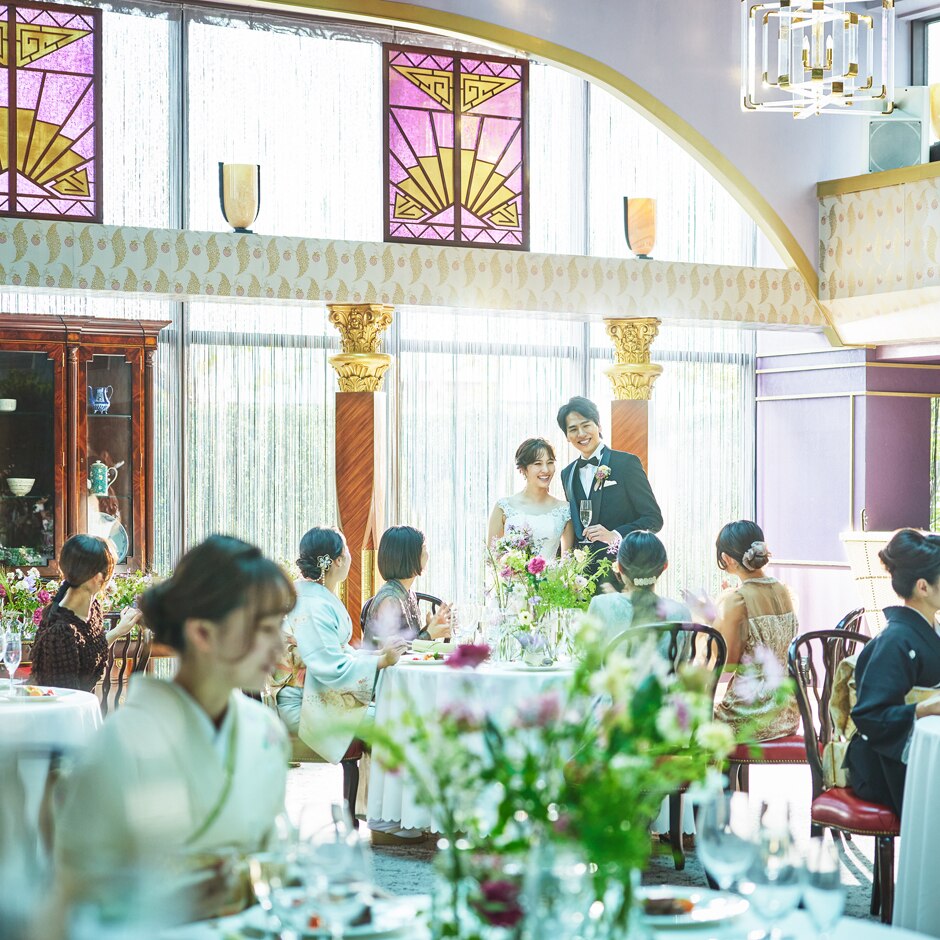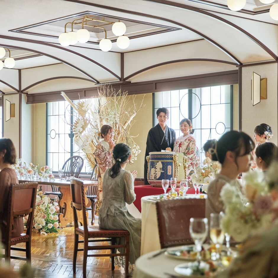 大正時代の風合いを今に伝える特別感あふれるパーティ会場。和魂洋才のステージはいずれも個性豊かな上質な舞台。挙式後もスムーズに披露宴の会場へ行けるように考えられた動線もうれしい。