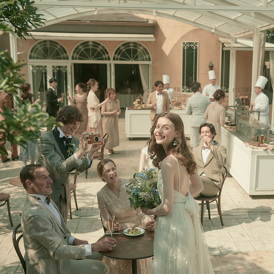 憧れのプロヴァンスの街に溶け込むような開放的なガーデンタイム。ウェルカムパーティやデザートブッフェなど、ゲストと一緒にたのしむアットホームなひととき