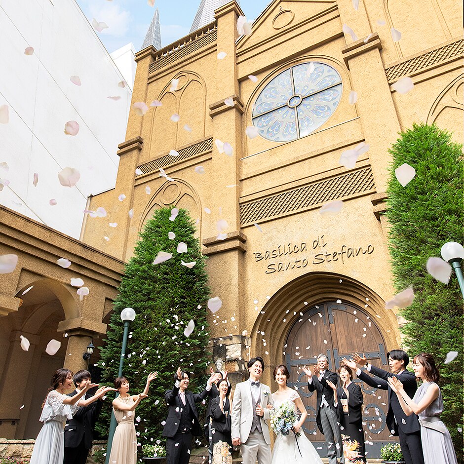 天井高18mの堂内に厳かな光を注ぐのは、イタリアから譲り受けた1800年代のステンドグラス。家族と腕を組み歩む入場、彼と交わす永遠の誓い、一つひとつのシーンに意義を感じる挙式は生涯心に残る想い出に。