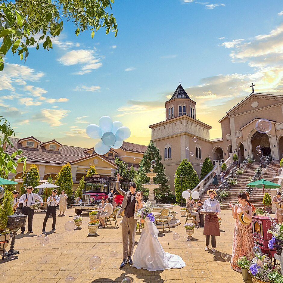 映画の世界のような【憧れのウエディングタウン】で、ゲスト全員と笑顔溢れるひととき