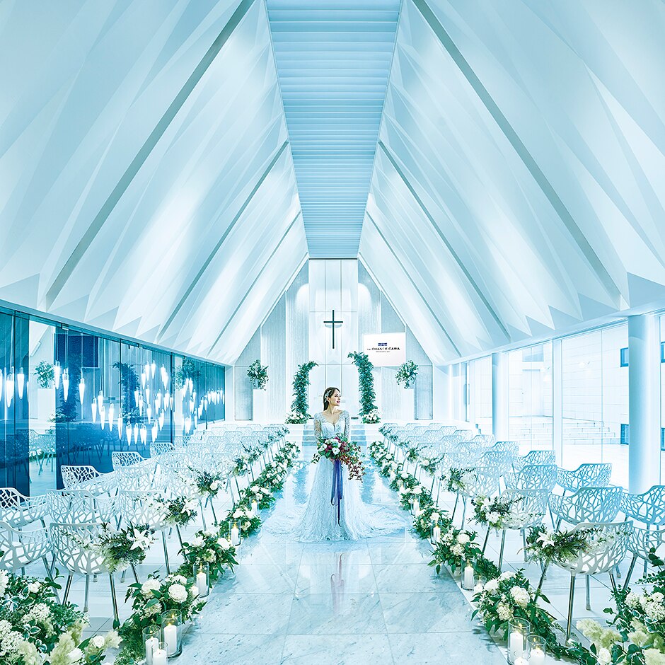 開放的でスタイリッシュなパーティ会場と光に包まれた純白のチャペル。加えて、様々なシーンを叶える充実設備や館内全ての空間を貸切利用できることが最大の魅力。ワンプランナー担当制、ゲスト宿泊・バス送迎、衣裳サポートなど、高いホスピタリティにも注目