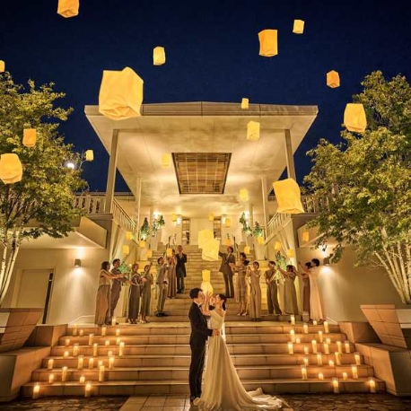 愛媛県内最大級の大階段では、空と山との境界線を望みながら最高にハッピーなひとときをお届け!フラワーシャワー等の演出が叶います