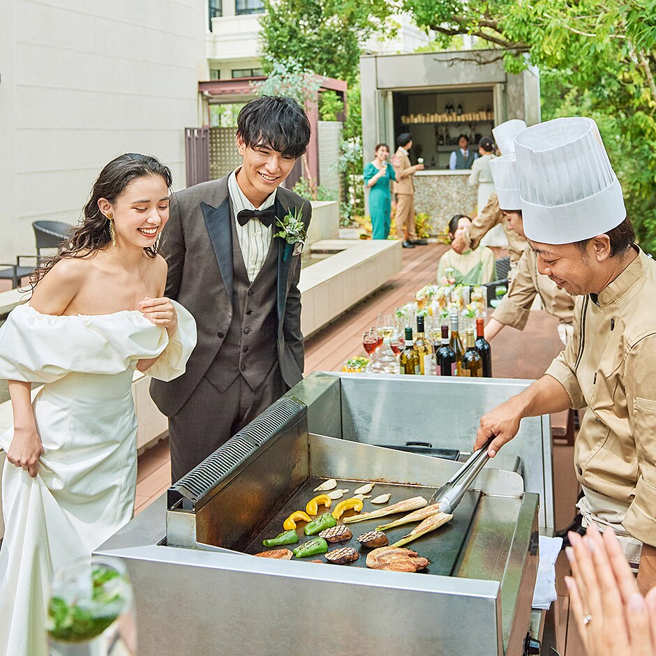 オープンキッチン演出やガーデンBBQなど、多彩な料理演出を用意