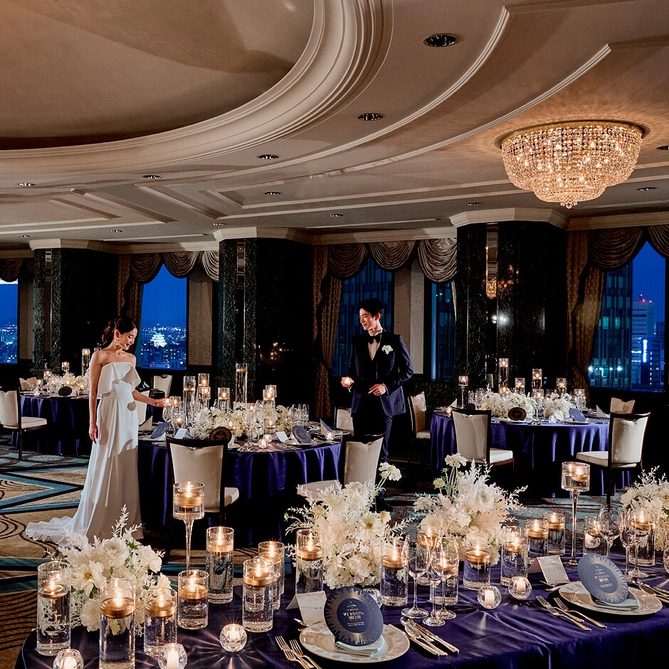 挙式会場は3ヵ所、パーティ会場は16階から51階まで6つのバンケットを用意。豊かな選択肢から、思い描くイメージに合わせてセレクトして。どこを選んでもホテルらしい気品が漂い、非日常の贅沢をプレゼントできる