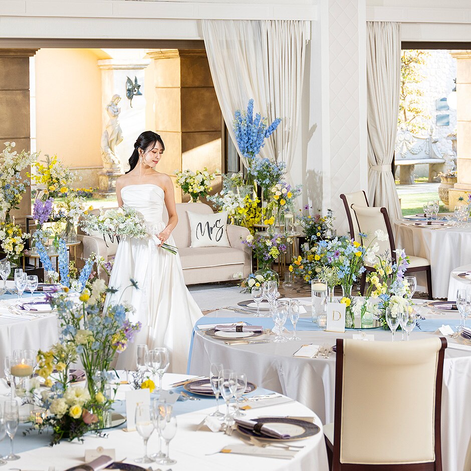 ホワイトを基調とした会場ではおふたりらしいコーディネートも映える -