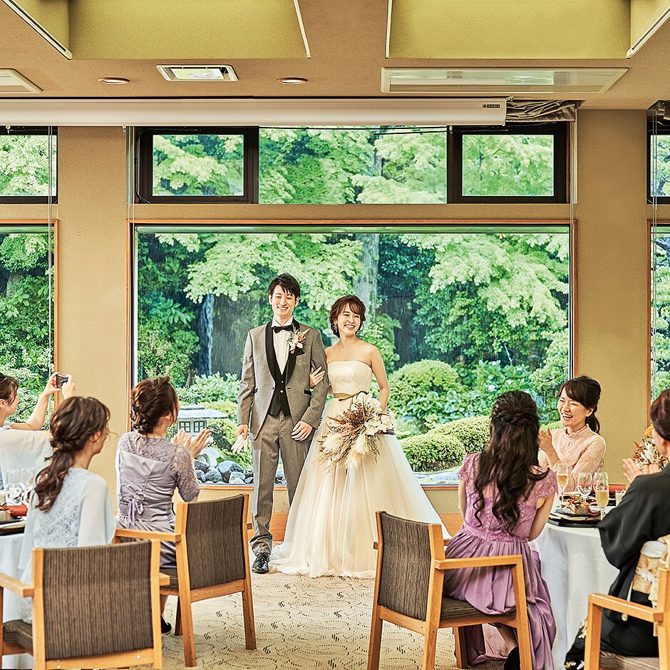 「家族や友人との和やかな会食がしたい」というおふたりにおすすめ。少人数でもこだわりたい挙式や料理、衣裳のことなど専門プランナーがわかりやすくご説明。日本庭園を望む和の会場で温かな祝宴を叶えましょう。