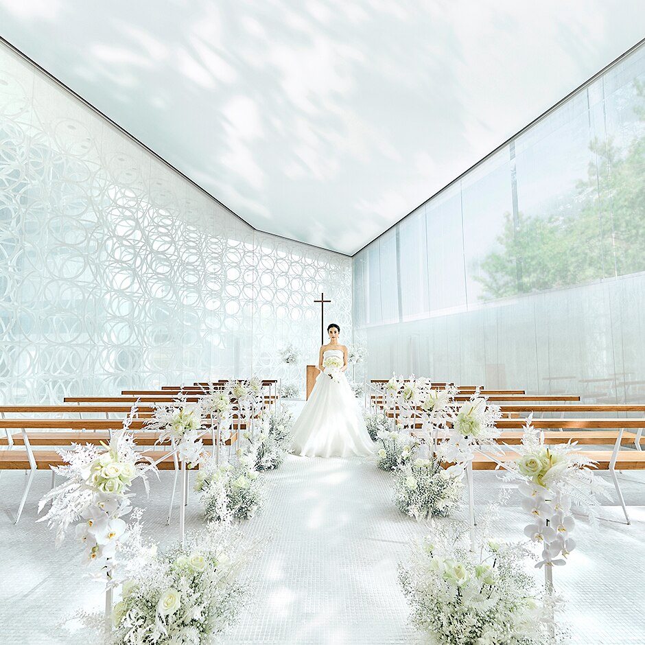 • 挙式会場(天高8.5M。木×緑×石の洗練されたチャペル)