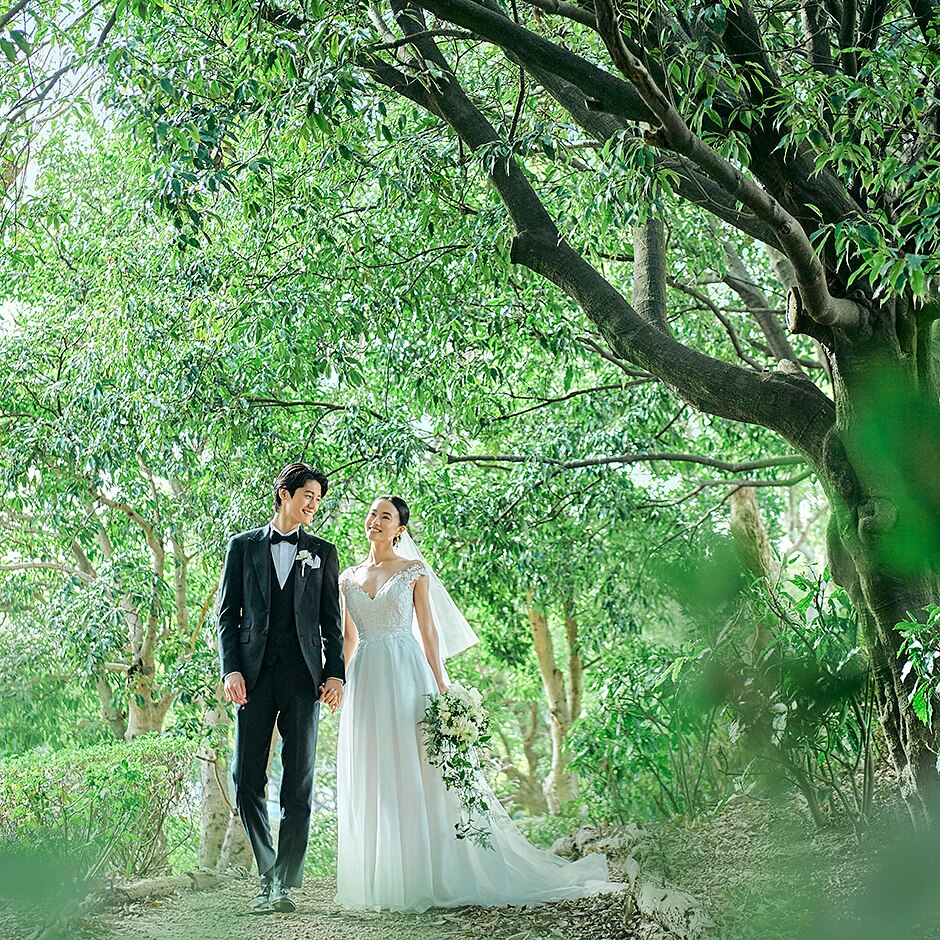 自然と静けさが織りなす非日常空間。緑×水×光漂うリゾートで心和らぐウエディング