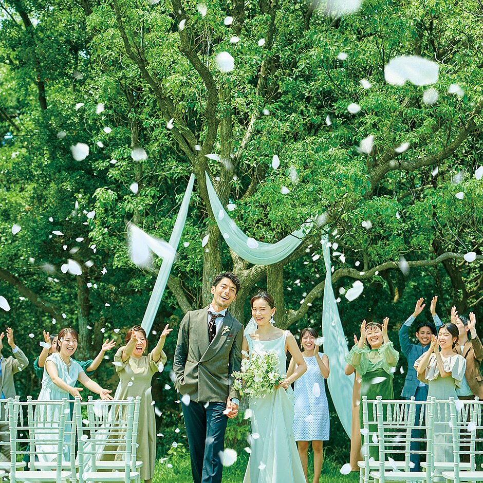 自然あふれる屋外チャペルで祝福のセレモニーを