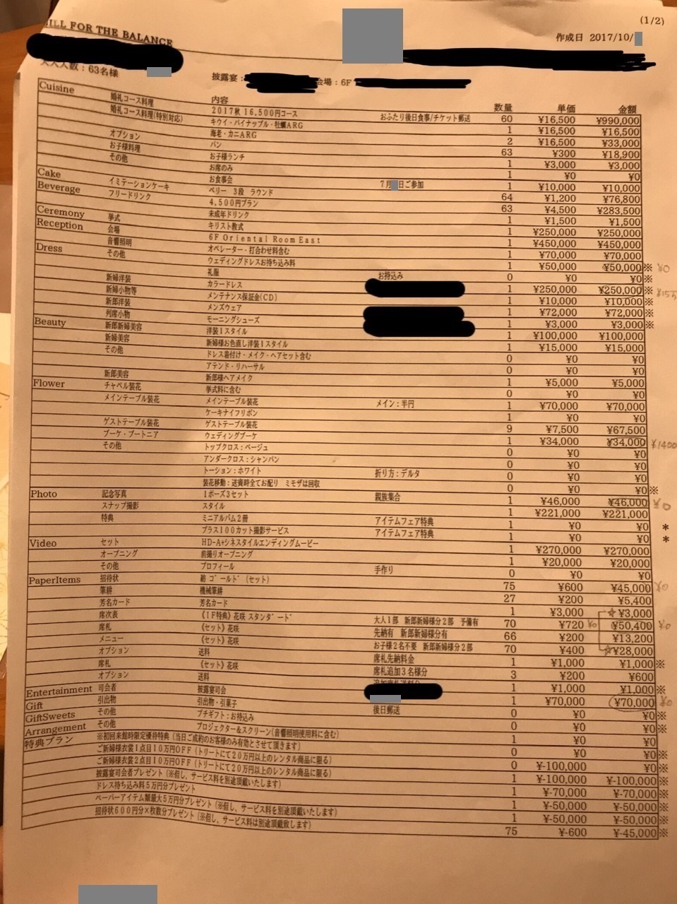 ※投稿された金額情報は、日取り、申込みのタイミングや会場の空き状況等によって異なるため、最終費用明細の項目や金額をもとにした、式場との価格交渉や追加サービス等の要望はご遠慮ください。
