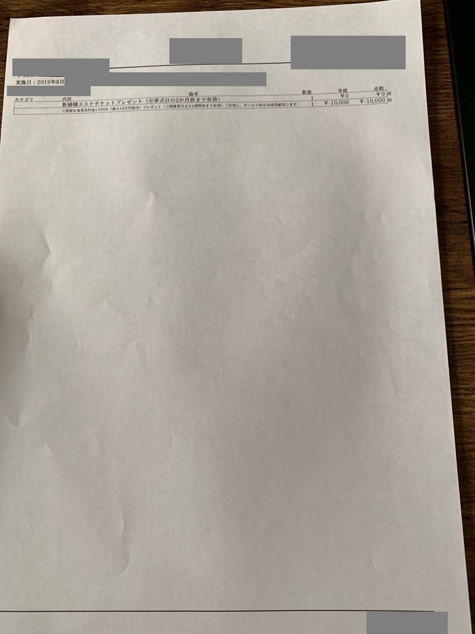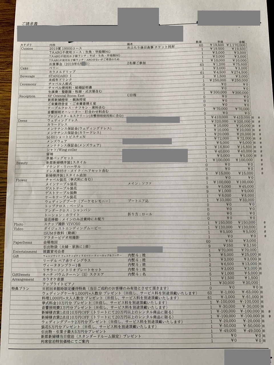 ※投稿された金額情報は、日取り、申込みのタイミングや会場の空き状況等によって異なるため、最終費用明細の項目や金額をもとにした、式場との価格交渉や追加サービス等の要望はご遠慮ください。