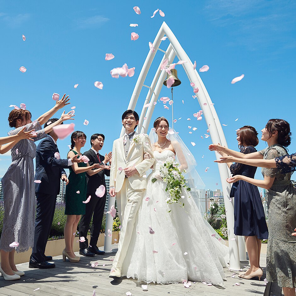 当日まで決まったら回数しか打ち合わせができないと思っていましたが、スタッフさんとは、メールのやり取りだけではなく直接相談させてもらうことができとっても良かったと思います。 会場となるホテルもとてもおしゃれなのでそこで写真を取れることもここの会場の魅力だと思いました。今回、私たちはテラスの開放もでき、晴天で風もなくテラスイベントも楽しめましたし、スカイチャペルもとても綺麗でした。 会場の雰囲気もパンフレットなど通り、おしゃれで装飾などを考えるのが苦手な方でも良い雰囲気を作れると思いました。 写真や動画の撮影の方も私たちの要望を聞き入れてくれて、写真が動画が出来上がるのが楽しみです。 親族や友人もホテルで宿泊できたのもホテルならではの特典だと思います。