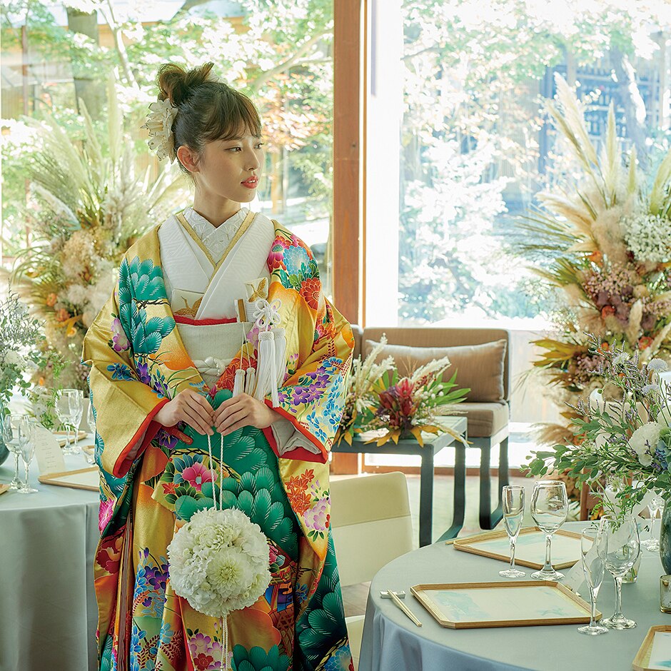 和洋どちらの衣裳でも映える、四季の自然が彩る美しい空間。そこでのおもてなしは、訪れたゲストにとっても非日常の体験に。挙式と会食がセットになったお得な少人数プランも要チェック!自宅からでも検討ができるオンライン相談や資料請求も随時受付中。