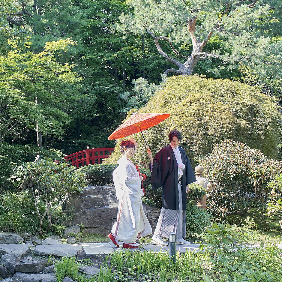 エルムガーデンの日本庭園からの「庭入場」演出。 -