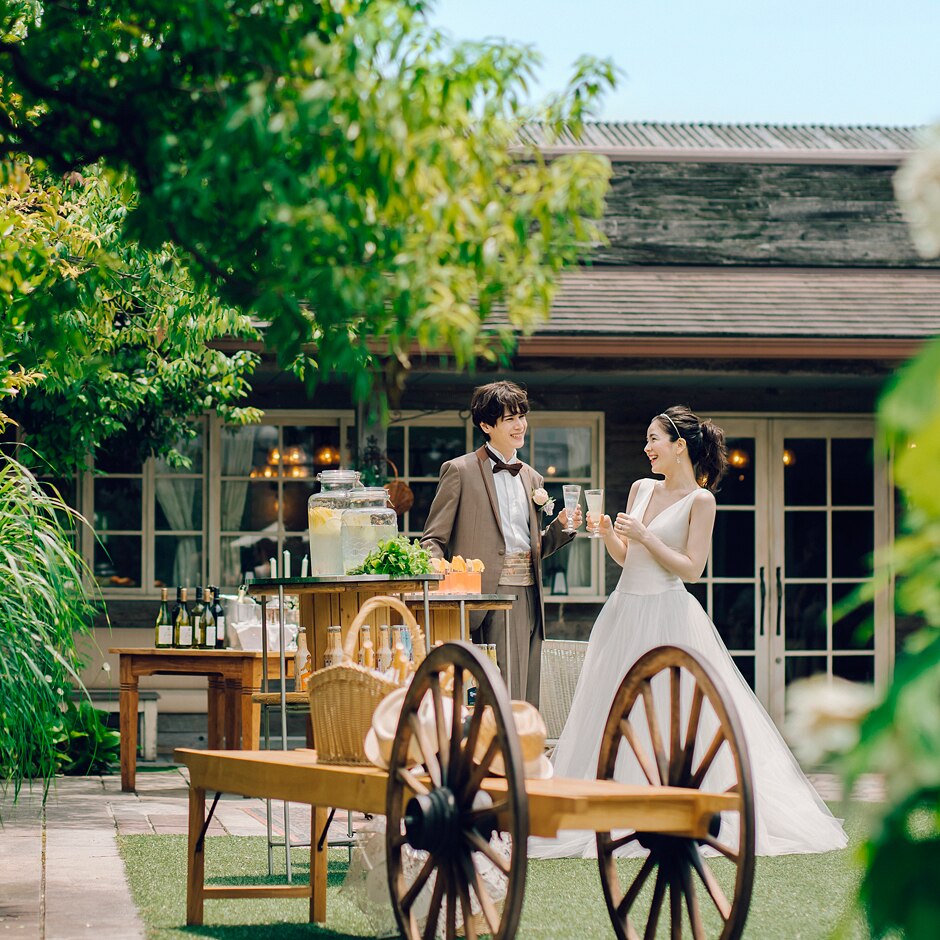 館内チャペル、ガーデン、パーティ空間から選べる自由な誓い。全天候型テラス&ガーデン付の邸宅を1組でまるごと独占して楽しむ1日。ふたりの想いがあふれる結婚式にゲスト満足度も高い。ナチュラルな貸切邸宅を舞台に、ふたりらしい等身大のおもてなしを実現