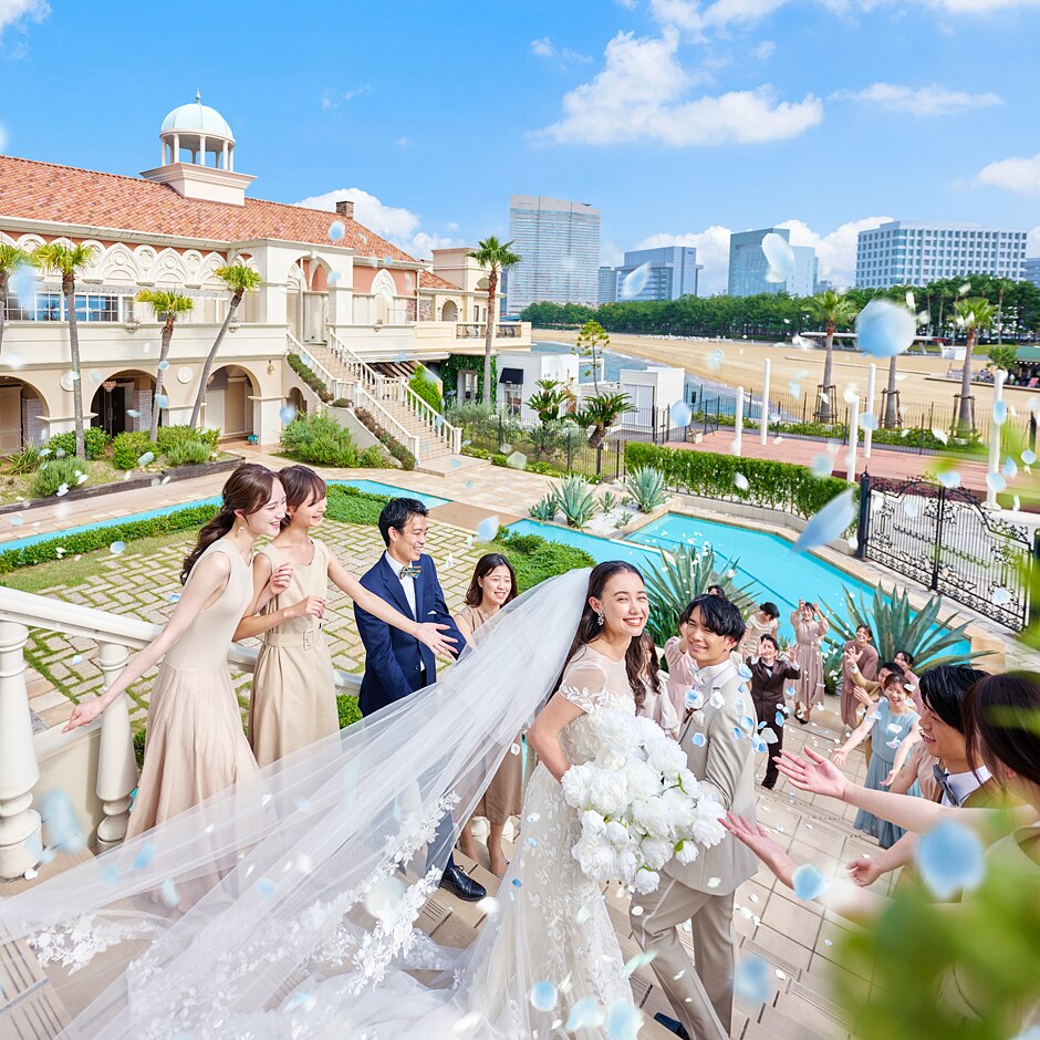 挙式会場を抜けて、大階段ではアフターセレモニー演出をお楽しみいただけます。 -