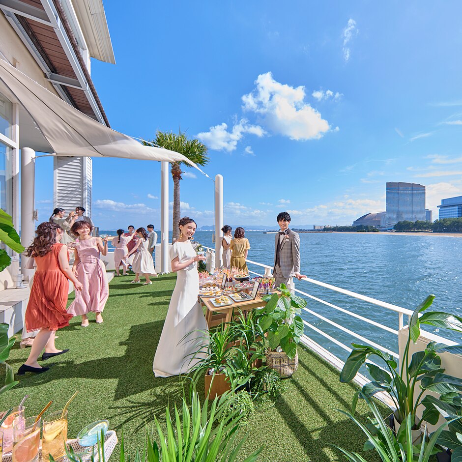 テラスデッキ付きの大人数会場「グランビュー」 海・緑・会場デッキを貸し切って、ゲスト満足度の高いパーティーを叶えよう