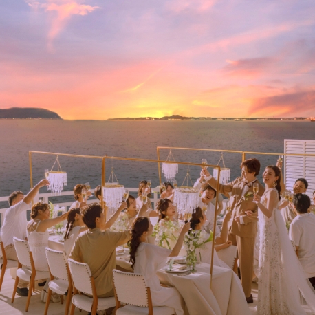 【天神駅から貸切バスで10分】世界が認める絶景を独占!海が360度囲むリゾートへ!水平線を望むチャペルや200年の歴史薫る大聖堂での挙式後は、海上リゾートをゲストと楽しもう!世界で認められ「アジア都市景観賞/2010年」などの賞に輝く絶景のリゾートがウエディングの舞台に。喧騒から離れたロケーションでリゾートへ旅行に来たようにリラックスした時間をゲストとともに満喫