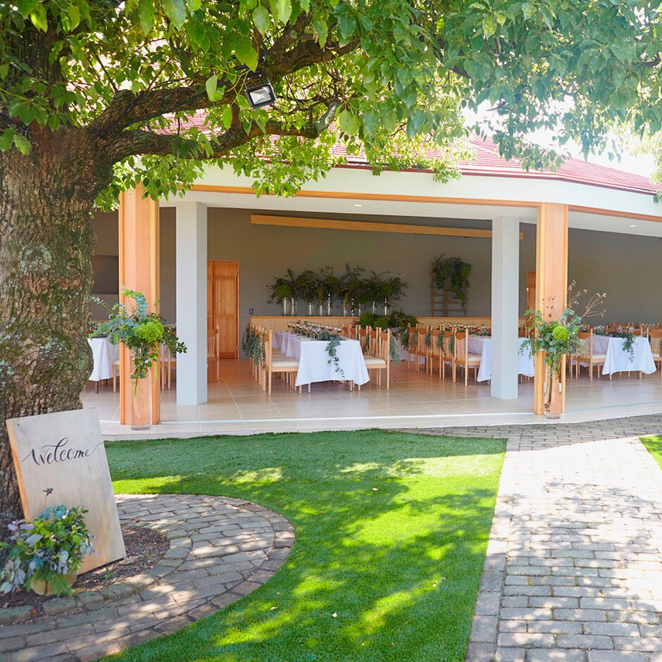 陽だまりのような心地良さが広がる同邸宅では、緑豊かなプライベートガーデンを貸切ったナチュラルな一日が叶う。会場の大きな窓を開けてガーデンとの一体感を楽しむのがおすすめ!ふたりにとって大切なゲスト全員がリラックスできる癒しの時間を楽しもう