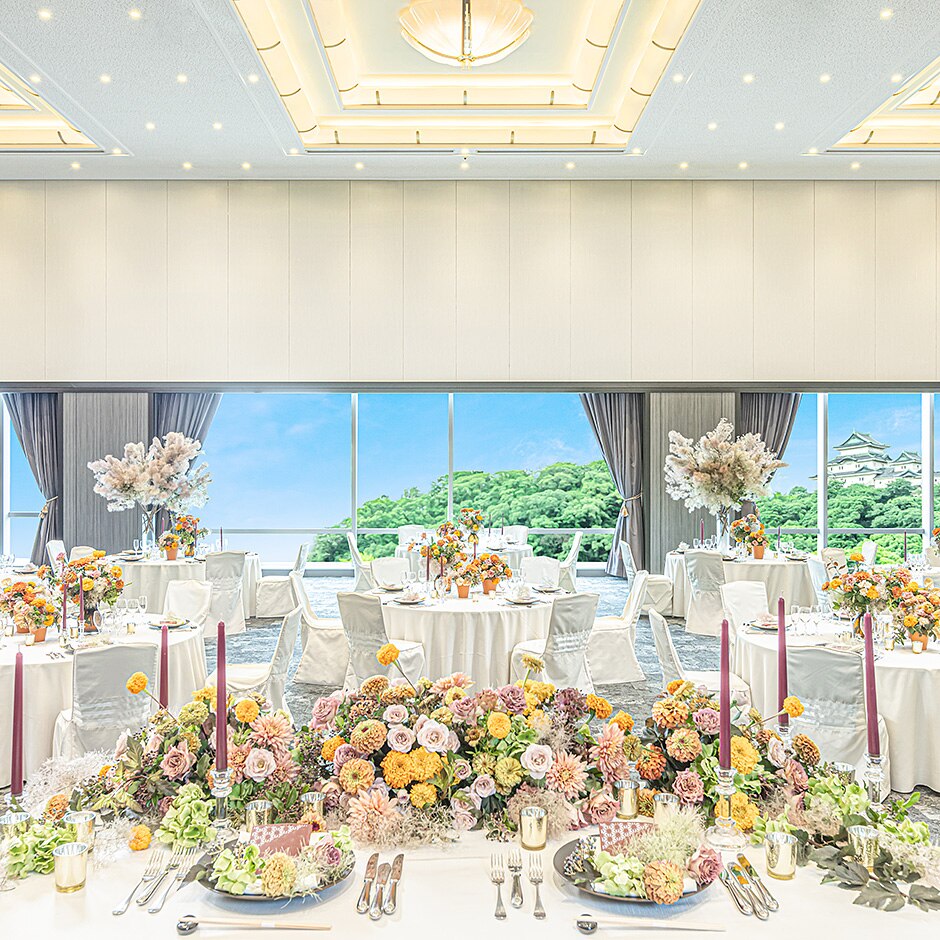 遠方ゲストも喜ぶ、和歌山城×四季折々の絶景。家族婚や少人数パーティーをご検討の方に人気の披露宴会場。