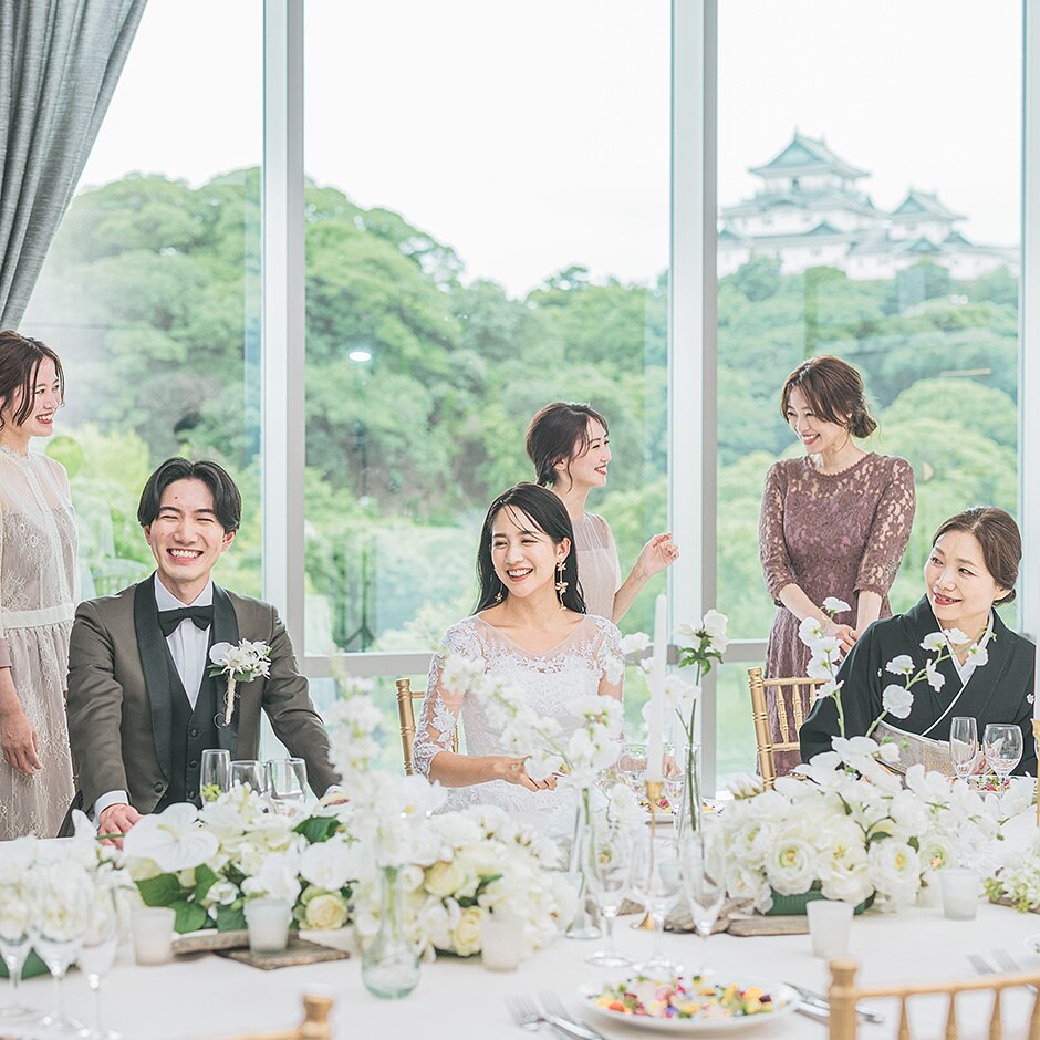 遠方ゲストも喜ぶ、和歌山城×四季折々の絶景。家族婚や少人数パーティーをご検討の方に人気の披露宴会場。