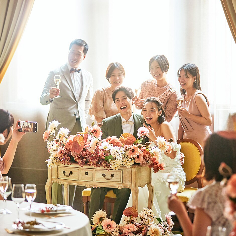 シックから大人可愛いコーディネートまで、ふたりの好みに合わせて叶える開放的なパーティ会場 -