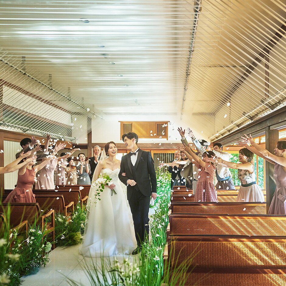 挙式会場(緑と柔らかな光に包まれたチャペル)