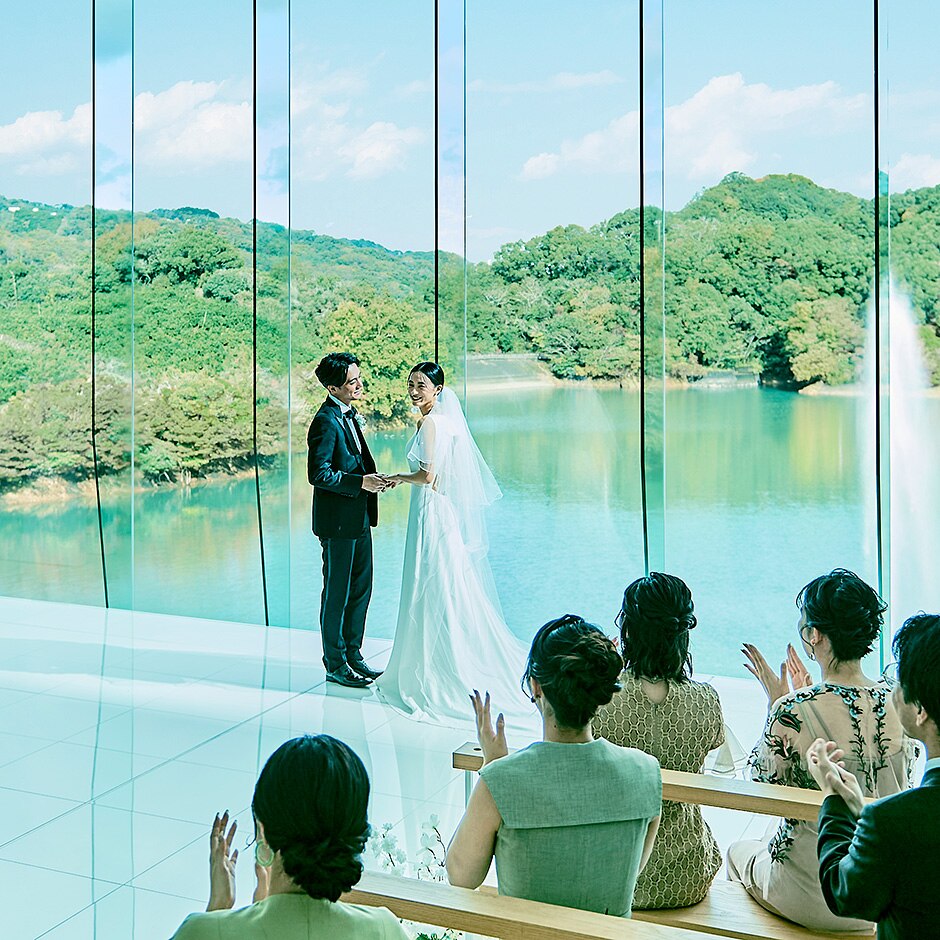 このたびはご見学にお越しいただき、また嬉しいお言葉をたくさんお寄せいただき誠にありがとうございます。 チャペルの雰囲気をお気に召していただけたとのこと、大変光栄に思います。 余分な装飾を省き、自然光と水のきらめきを最大限に活かした設計は、私たちが大切にしている空間の魅力のひとつです。 見学当日に虹がかかっていたとのこと、とても素敵な瞬間にお立ち会いいただけたのですね。 おっしゃる通り、雨の日にはまた違った神秘的な表情をお楽しみいただけます。 また、お料理や地元食材、砥部焼の器にまで目を向けてくださりありがとうございます。 ゲストの皆様に選んでいただけるスタイルや、地域の魅力を感じていただけるおもてなしを大切にしておりますので、 その点を評価していただけたことはスタッフ一同大きな励みになります。 今後のお打ち合わせでも、おふたり様らしい温かい結婚式を一緒に形にしてまいりたいと思います。 当日までどうぞよろしくお願いいたします。