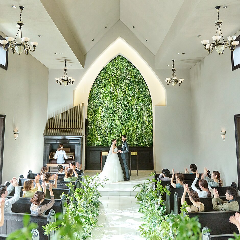 挙式会場(ナチュラルグリーンの天井高9mチャペル)