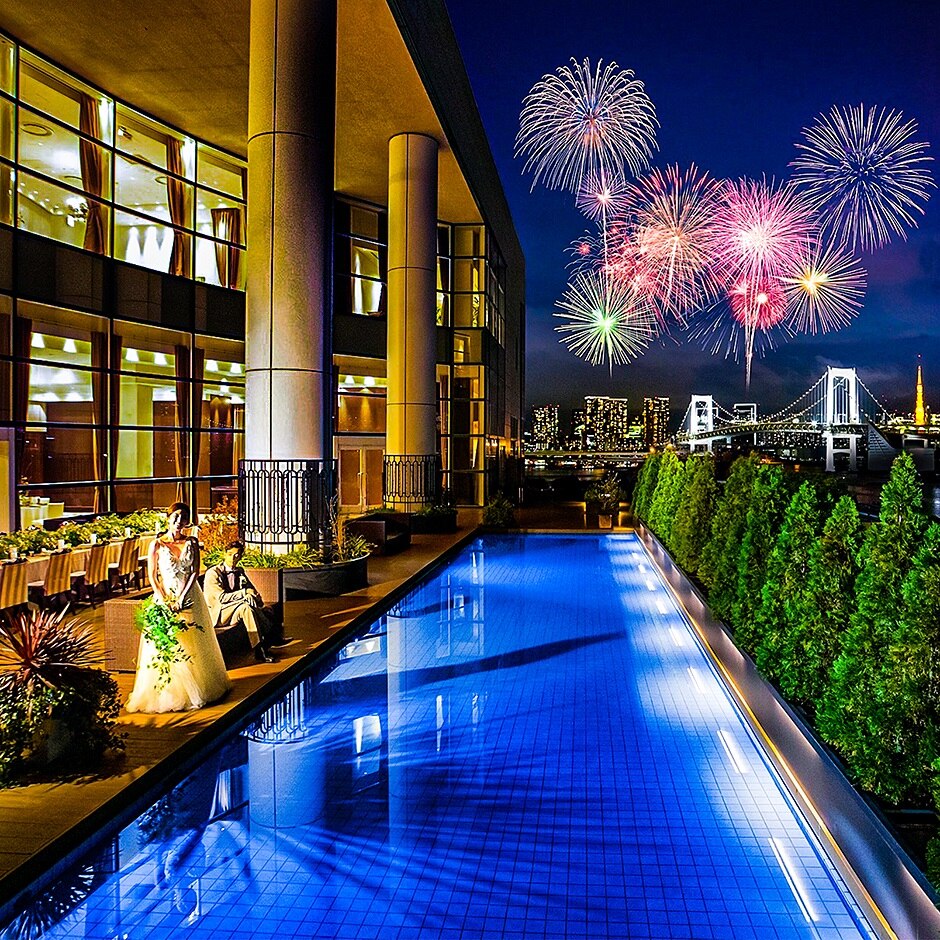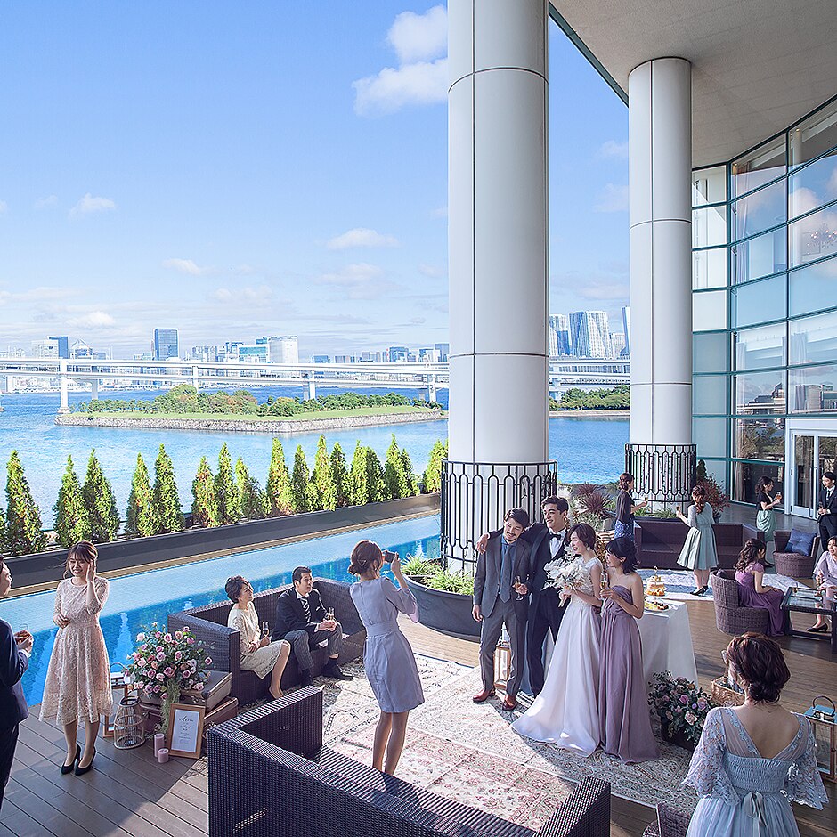 【25年7月リニューアルオープン】レインボーブリッジなど、東京のシンボルと陽光で輝く海を望む優雅な一日!地上33mからの『圧巻のロケーション』で、ゲストと非日常の時間。美しいオーシャンビューを背景に誓うチャペルでの感動のセレモニーを叶えて!