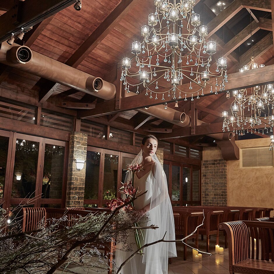 • 挙式会場(天然木で設えられた独立型チャペル)