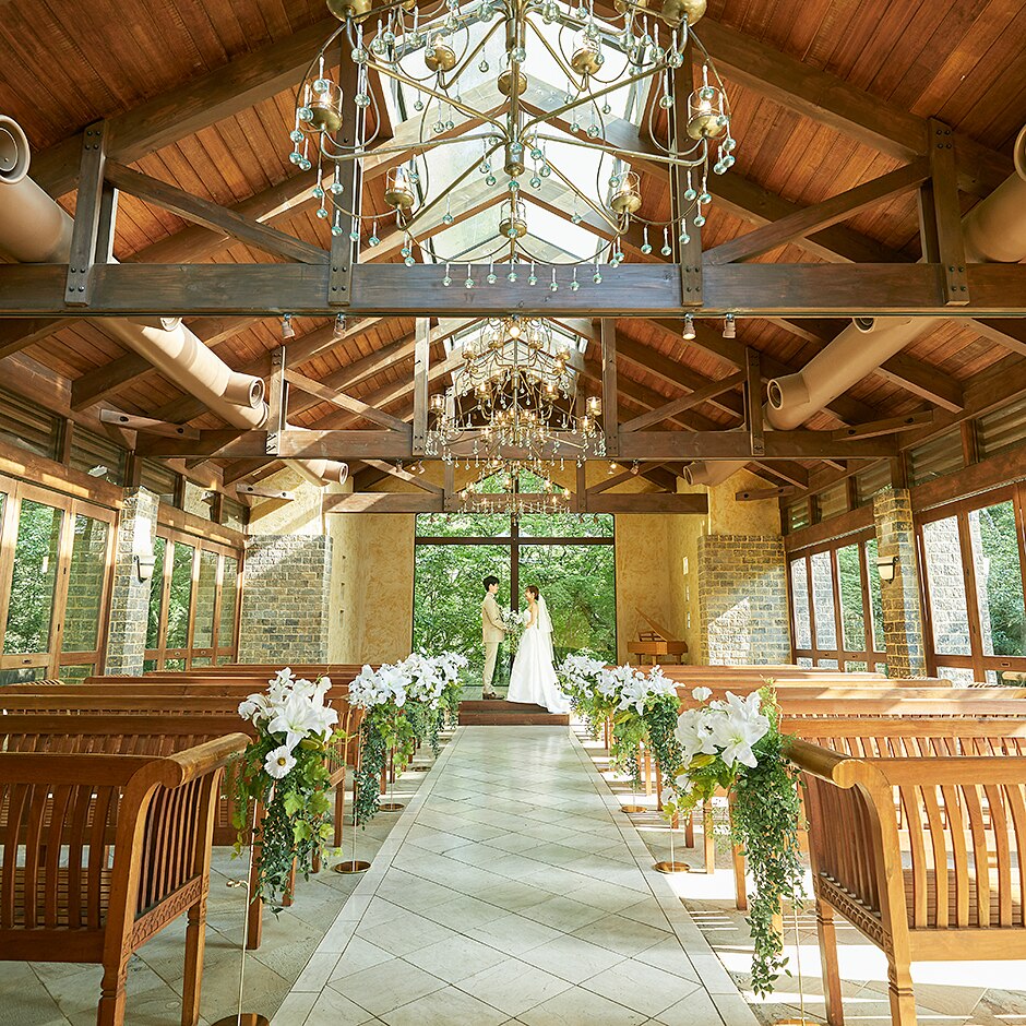 春日原生林に囲まれる木のぬくもりとみどり感じる開放感のある独立型チャペル